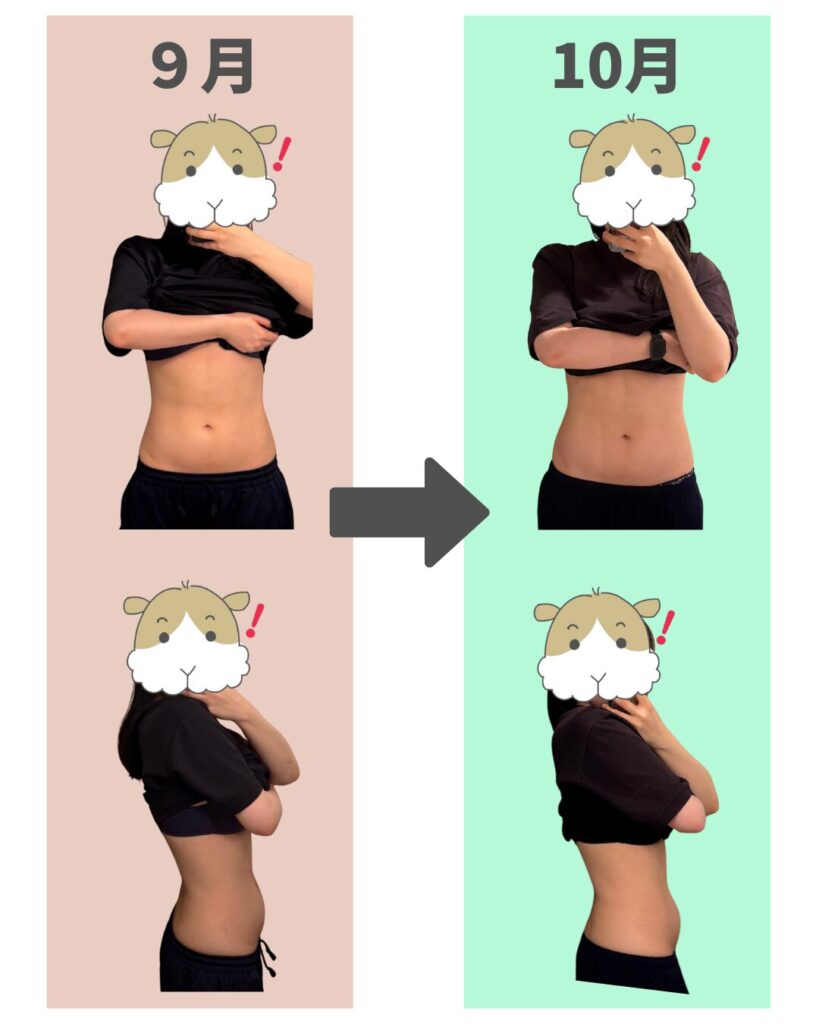 ほぼ変わらず、若干10月の方がお腹が張っているかも。
